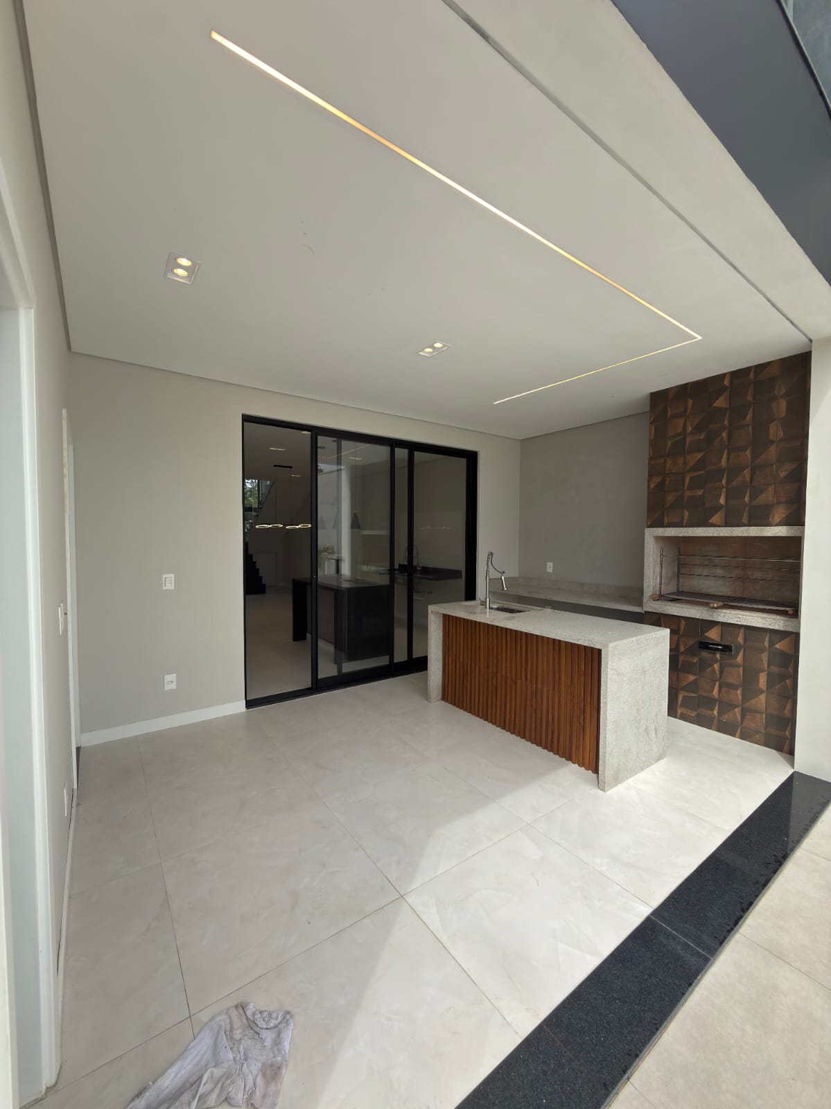 A casa dispõe de sala de estar, sala de jantar, cozinha projetada, despensa, área gourmet com churrasqueira e bancada,piscina, chuveiro externo,e garagem para 4 carros