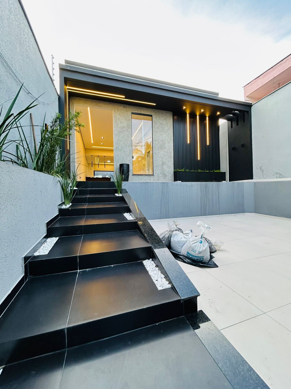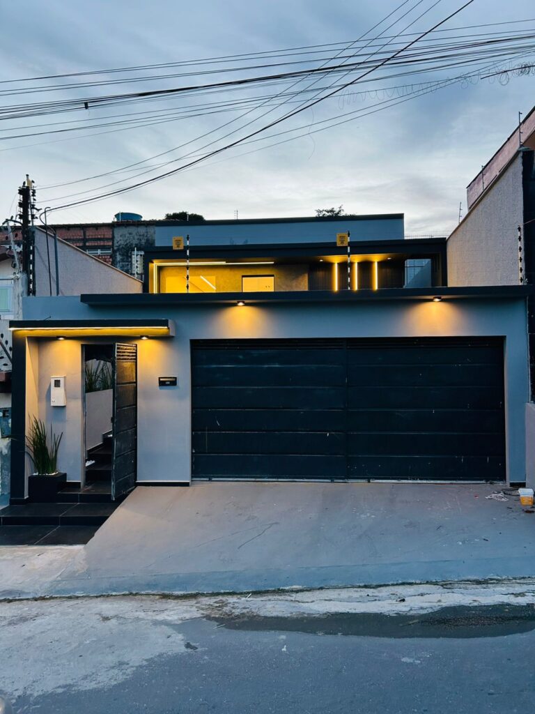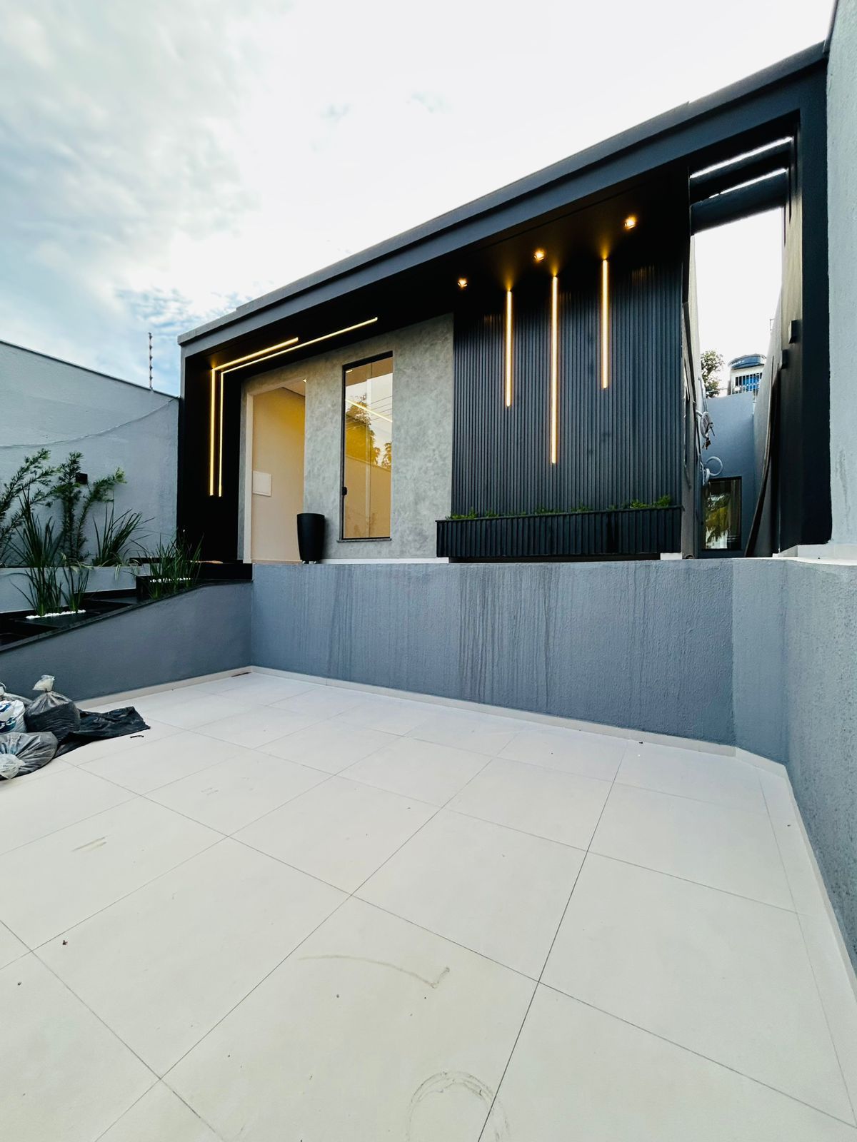 - Fachada moderna com iluminação em perfis de LED