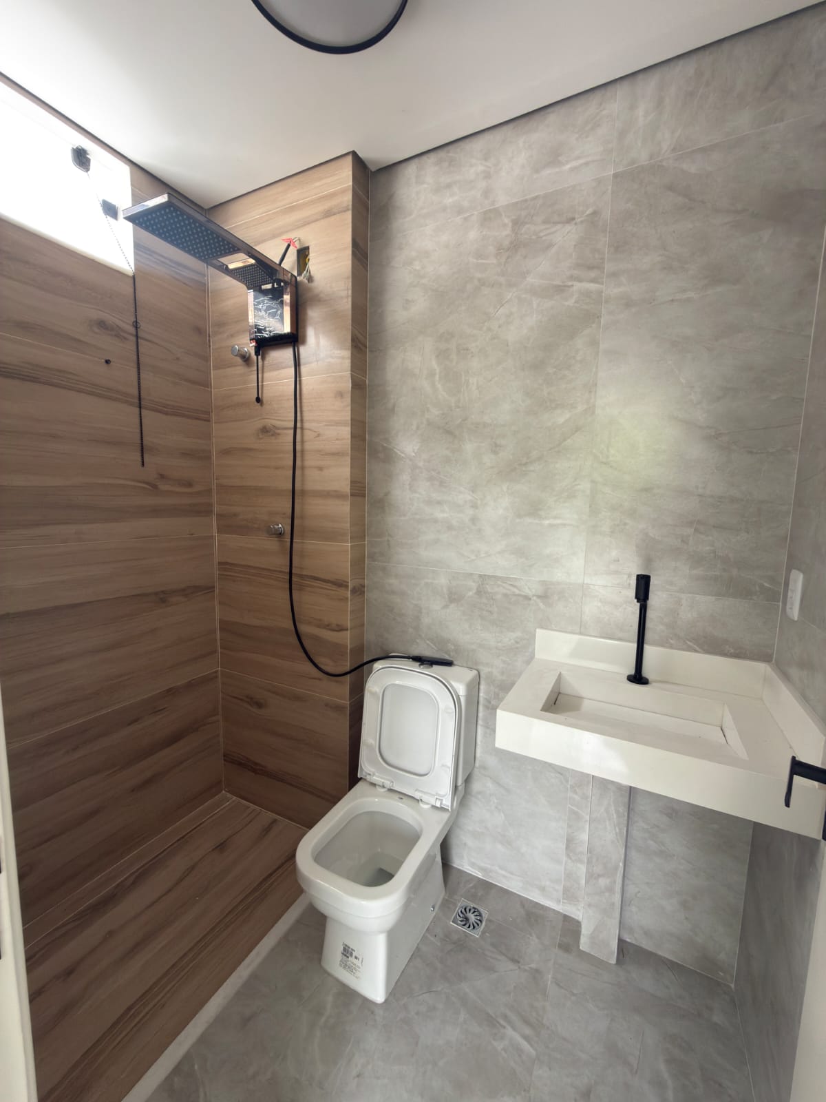 O acabamento é de alto padrão, com piso em porcelanato, forro em gesso e iluminação em LED.